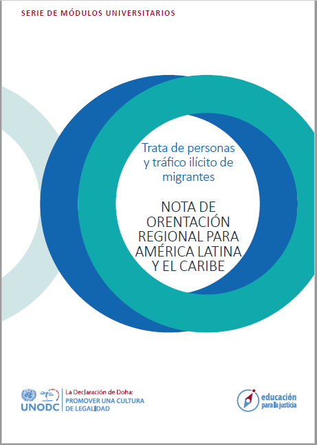 Este Nota de Orientación Regional para América Latina y el Caribe ha sido desarrollado por la Oficina de las Naciones Unidas contra la Droga y el Delito (UNODC, por sus siglas en inglés) bajo su iniciativa Educación para la Justicia (E4J, por sus siglas en inglés) en línea con su Programa Global para la Implementación de la Declaración de Doha. Forma parte de la serie de Módulos Universitarios sobre trata de personas y tráfico ilícito de migrantes de E4J. La totalidad de los materiales de E4J incluye módulos universitarios sobre integridad y ética, prevención del delito y justicia penal, lucha contra la corrupción, delincuencia organizada, armas de fuego, ciber-delincuencia, delitos contra la vida silvestre, los bosques y la pesca, y lucha contra el terrorismo, además de trata de personas y tráfico ilícito de migrantes. Todos los módulos universitarios de E4J incluyen sugerencias para la realización de ejercicios en clase, evaluación de estudiantes, presentaciones y otras herramientas de enseñanza que los profesores o capacitadores pueden adaptar a sus propios contextos, e integrar dentro de cursos o programas de nivel universitario ya existentes. Este Módulo propone un esquema para una clase de tres horas, pero puede utilizare para presentaciones de menor o mayor duración. Todos los módulos universitarios de E4J toman en consideración investigaciones y debates académicos existentes y pueden contener información, opiniones y declaraciones de una variedad de fuentes, incluyendo reportes de prensa y de expertos independientes. Las referencias a recursos externos fueron verificadas a la fecha de su publicación. Sin embargo, dado que los sitios web de terceros podrían sufrir modificaciones, le rogamos nos contacte si detecta una referencia equivocada o es redirigido a un sitio web con contenido inadecuado. También le solicitamos nos informe en caso de detectar que alguna publicación está vinculada a una versión o sitio web no oficial. Pese a haber realizado una cuidadosa traducción de este módulo para asegurarnos una traducción al español precisa, la versión oficialmente aprobada es la versión en idioma inglés. Por ende, en caso de duda, le rogamos consultar la correspondiente versión en inglés. Los hipervínculos en el texto llevan a los textos originales en inglés. El género gramatical masculino se utiliza de una manera neutra para referirse a todos los miembros de una especie, sin distinción de sexos. Condiciones de uso y descargos de responsabilidad para los módulos universitarios |