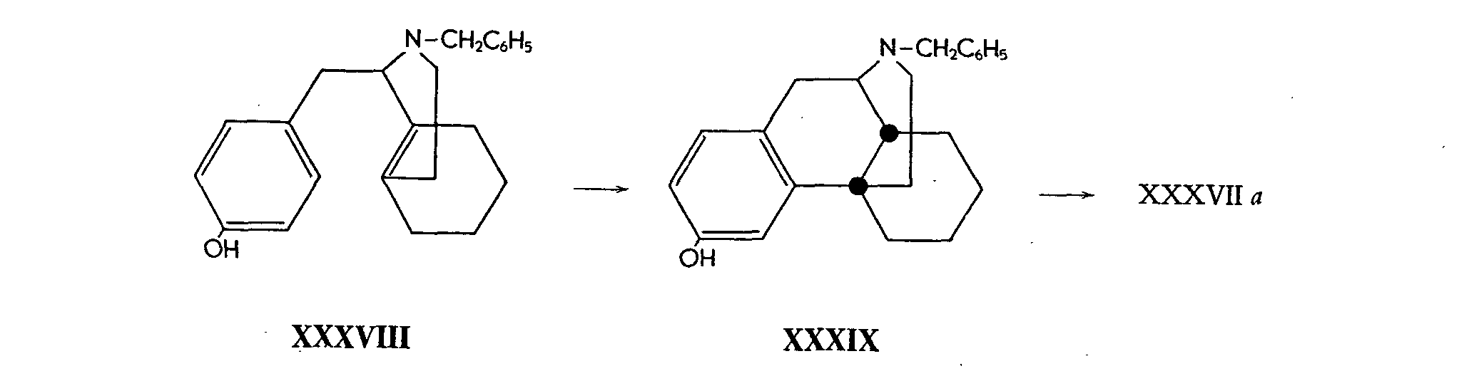 (XXXIX) . The latter was cyclized to give (-)-3-hydroxy- N-benzylmorphinan (XXXlX). Hydrogenolysis of the N-benzyl group then afforded (-)-3-hydroxymorphinan in excellent yield.