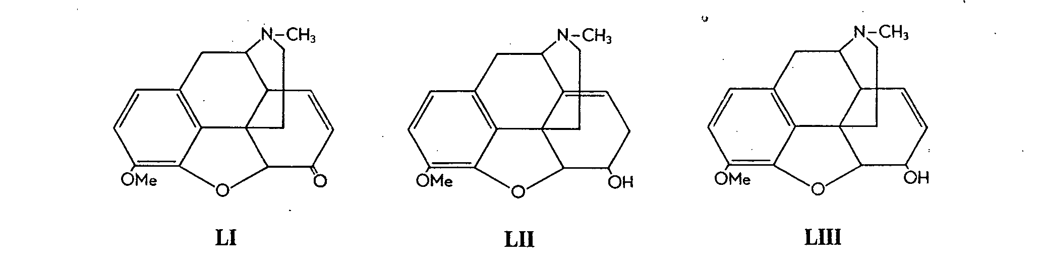 Bromination of thebaine (II) yielded 14-bromocodeinone (XLIX), and reduction with palladium in chloroformmethanol afforded the new neopinone (L). This ketone is related to the rare opium alkaloid, neopine (LII), in the same way as codeinone (LI) is related to codeine(LIII).