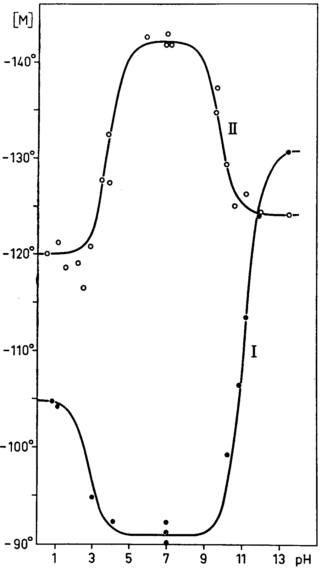 In table 1 we have set forth the specific rotation [α] D supplied by the various authors. The molecular weights, and therefore, the corresponding molecular rotations [M] D, are scarcely ever explicitly supplied by the authors; they have been supplied by us on the basis of the context to enable the comparisons to be made.