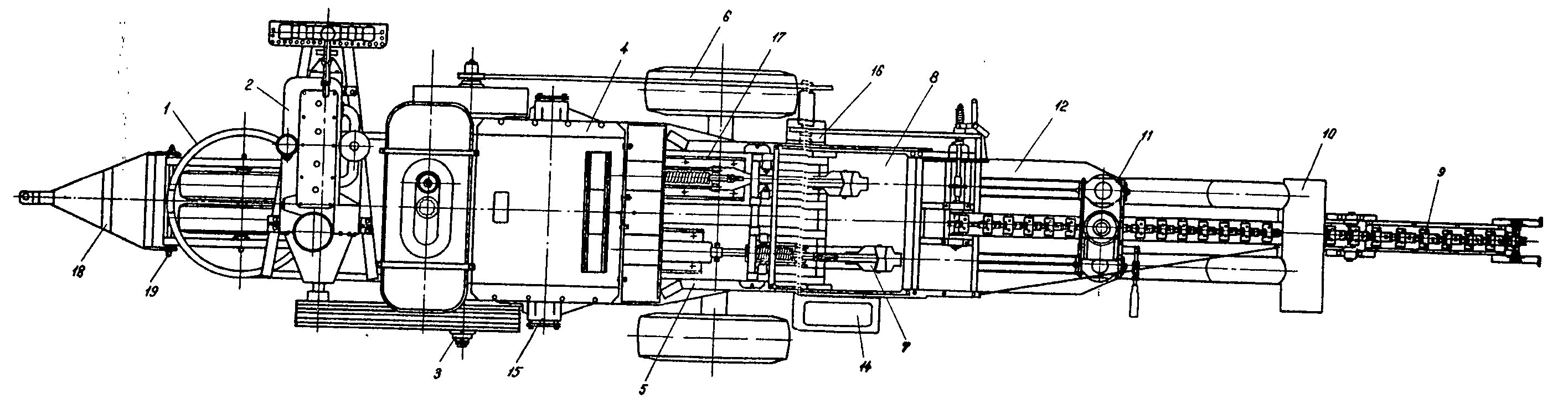 The Plunger Press seen from above (The parts of the machine; indicated by numbers on the diagram, are not discussedn in this paper.)