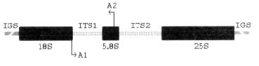Figure I. Organization of ribosomal genes: A1 and A2 indicate the anneal region of the primers for the ITS1 amplification