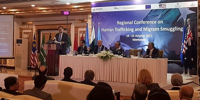 Islamabad, Pakistan - 24 October 2017 - Since 2014, UNODC has been organizing regional conferences, inviting relevant countries to present on international best practices for improving border control mechanisms as well as on regional cooperation for trafficking in persons (TIP) investigations, prosecutions and the protection of victims. As a follow-up to the 2016 regional conference, UNODC organized another regional conference on TIP and the smuggling of migrants (SOM) on 24-25 October 2017. Participating countries included Afghanistan, Austria, Bahrain, Czech Republic, Greece, Hungary, Indonesia, Iran, Iraq, Italy, Kuwait, Malaysia, Oman, Pakistan, Qatar, Russian Federation, Saudi Arabia, Spain, Thailand, Turkey and the United Arab Emirates.
