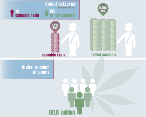 Advances in cannabis plant cultivation techniques and the use of genetically selected strains have led to an increase in the number of cannabis harvests, as well as in the yield and potency of cannabis. The potency of cannabis, commonly measured in terms of the concentration of THC (Δ9-tetrahydrocannabinol, the main psychoactive ingredient in cannabis), has been increasing in many markets over the past decade, leading to growing concern about the potential of cannabis to cause serious health problems. Despite the fact that increasing professionalism and sophistication have enhanced the capacity of cannabis plant growers to avoid detection by law enforcement authorities, data for 2013 show an increase in the quantities of cannabis herb and cannabis resin seized worldwide.